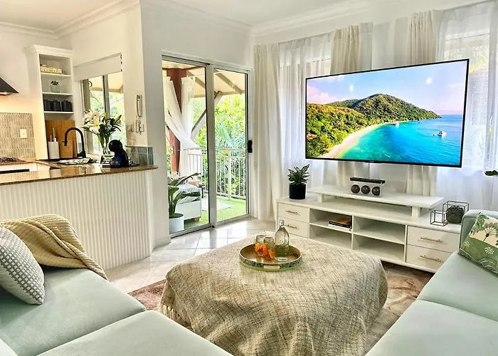 Featuring a private swimming pool, the spacious Luxury 2 Bedroom Apartment, Treetop Views, Resort With 4 Swimming Pools Cairns is a 5-minute walk from Starry Night Cinema. Wi-Fi and a car park are among the essentials at guests' disposal.